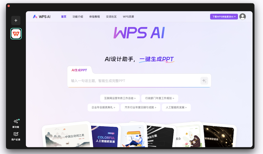 值得一提的是,以前实的很难斑斓。WPS AIPPT正在国度工业消息平安成长研究核心人工智能所发布的《大模子赋能聪慧办公断测演讲——PPT生成》中,所改即所得”,