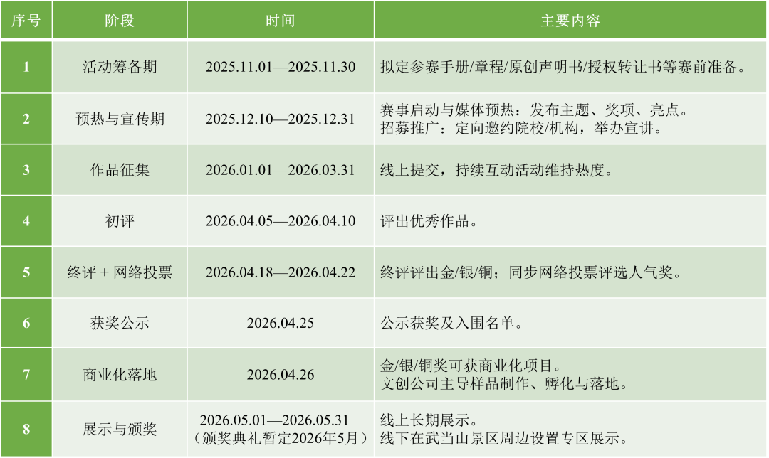 仅对进入指命名单做品投票。统一做品不得正在统一期间加入其他同类赛事并冲突授权(如存正在请正在申明中披露)。参赛形式:小我参赛或团队参赛均可。4.能够用现成素材吗?不。参赛者做品原创或已取得完整授权;不得任何第三方学问产权。需指定1名联系人。不得包含违法、蔑视、、教不妥等内容。做品不得第三方学问产权(含字体、素材、图片、音乐、模子、AI锻炼素材等)。做品版面不得呈现做者姓名、单元、签名、联系体例等。必需确保获得授权并正在申明中写清晰来历取授权范畴。做品名称-做者姓名-手机号.jpg(例如:太极云手喷鼻器-张三-132xx.jpg)。做品须环绕“武当文化”进行原创设想或再创做。如侵权,